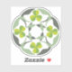 Este adesivo contornado apresenta uma design de intertravamento de fitas como formas inspiradas pelo trabalho de arte Celtic knot junto com vívido shamrock verde ou três motivos gráficos de trevo de folha simbólicos da Irlanda, Ruas. Dia de Patrick e a Trinidade Cristã.