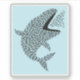 Este adesivo artístico apresenta uma silhueta de baleia criada de uma coleção de peixes pequenos, arranjada para formar a criatura majestosa. Alguns peixes são vistos nadando na boca da baleia, dando à design um senso de fluxo e profundidade. Uma peça única para estética temática sobre água ou entusiastas da vida marinha.
