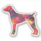 Silhueta de raça suína de um Ponteiro Alemão Curto cheio de um padrão geométrico colorido. Esta silhueta também pode representar o Ponteiro Alemão de Cabelos Curtos, Weimaraner, Espírito de Cinza, Espírito de Cinza, Weimaraner Vorstehund, Ponteiro de Weimer, Silver Ghost, Cão de Aves Inglês, Ponteiro Dinamarquês Antigo, Cão de Ponta Continental, Collie Suave
