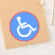 Este "Símbolo de Cadeira de Rodas para Deficientes - Adesivo Azul" fornece um símbolo claro e universalmente reconhecido para indivíduos com deficiências. O adesivo apresenta o símbolo internacional de acessibilidade, uma figura estilizada de cadeira de rodas em um quadrado branco, juntamente com a palavra "Handicap" em texto azul e negrito.
