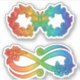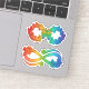 O pacote com dois adesivos apresenta o sinal de infinidade do arco-íris, embelezado com flores, folhas, uma vinha e borboleta. O espectro de cheios das cores representa a diversidade do espectro do autismo e o movimento maior da neurodiversidade.