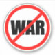 Esta trabalho de arte apresenta a palavra guerra atravessada dentro de um círculo.