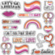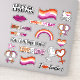 Uma variedade de autocolantes lésbicas com a bandeira lésbica trans inclusiva, símbolos venosos, citações de meme divertidas e muito mais.