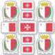 Quatro vinhetas de vinilo de corte personalizado com o casaco de armas de Malta e sete autocolantes com a bandeira maltesa no centro