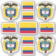 Quatro vinilhetas personalizadas com casaco de armas da Colômbia e sete autocolantes com a bandeira colombiana no centro