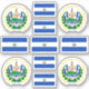 Quatro vinilhetas de corte personalizado com o casaco de armas de El Salvador e sete autocolantes com a bandeira salvadorenha no centro