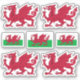 Quatro vinhetas de vinilo de corte personalizado com o casaco de braços do País de Gales e três autocolantes com a bandeira galesa no centro