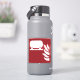 Instalação fixa do extintor de incêndio e ícone de chama em fundo vermelho.
