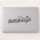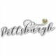 Etiqueta personalizada de corte de design de letra com script. Bandeira da cidade de Pittsburgh num coração.