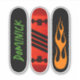 O design de skate legal personalizado apresenta três skateboards coloridas com o seu nome impresso em uma fonte verde verde verde sobre um skate preto. Um adesivo legal e único para os entusiastas do skate!