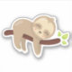 Um autocolante bonito, de um Sloth sonolento, num galho, com um rosto feliz. Vinheta adorável para um projeto de artesanato de criança, artigos de papelaria, livros, etc.