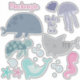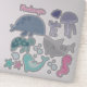 Esta folha autocolante sob o mar apresenta uma baleia, tubarão, geleia, tartaruga marinha e cavalo marinho. Personalizado com o nome do seu filho.