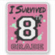 Esta design com as palavras, "Eu Sobrevivi ao 8º ano," expressa como as crianças se sentem depois de terminarem a aula. Você tem que entregá-lo às crianças, elas são muito resilientes! As crianças merecem uma medalha, ou talvez apenas um sorvete.