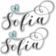 Bandeira de Sofia em um coração, design com script. Tampas cortadas - 2 na folha.