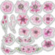 This sticker set features a collection of soft pink floral illustrations painted in a delicate watercolor style. Each design highlights layered petals, gentle shading, and natural greenery, creating a cohesive set that feels light, romantic, and timeless. The mix of individual blooms, sprigs, and small arrangements makes the collection versatile and visually balanced, perfect for adding a subtle floral touch to a variety of creative projects.