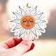 Este adesivo de vinil encantador apresenta um sol pacífico com olhos fechados, uma lua crescente e estrelas cintilantes, criando um clima sereno e celestial. Perfeito para adicionar um toque de capricho a laptops, garrafas de água, diários e mais.