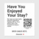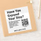 Incentivar os clientes a deixar uma revisão. A mensagem diz: "Esperamos que tenha tido uma experiência agradável conosco. Em caso afirmativo, peço-lhe que aguarde alguns instantes para deixar uma revisão". Altere o texto para atender às suas necessidades. Altere o link Código QR para o link que leva à sua própria página de revisões. Se o Google for consultado, consulte: https://tinyurl.com/5ydtb22k