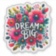 Um arranjo colorido de flores florescentes rodeia a frase elevadora encorajando-se a sonhar grande. As cores vivas e os tons quentes inspiram uma sensação de esperança e motivação, convidando os espectadores a abraçar suas aspirações e buscar grandeza.