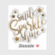 Este adesivo de vinil recortado personalizado apresenta estrelas douradas e um guião cursivo de ouro brilhante que diz "Brilho de sorriso". Ele está disponível em muitos tamanhos e é excelente para sua garrafa de água, laptop, mala, carro ou onde você quiser mostrar seu estilo. Há muito mais designs disponíveis na minha loja aqui no Zazzle. Certifique-se de parar e verificar e seguir-me para novas atualizações de produtos. Obrigado pelo seu interesse no SapphireDesigns!