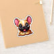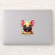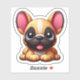 Uma ilustração irresistível, ao estilo chibi de um cachorrinho de Cachorro Francês Fawn com sua língua de fora. Possui orelhas cor-de-rosa sobredimensionadas e olhos enormes e brilhantes, dando-lhe um desenho animado feliz e adorável perfeito para um adesivo.
