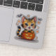 Um adesivo de gatinho Bengala em estilo de Kawaii Halloween com abóboras e tons festivos, excelente para amantes de gatos e artesanatos sazonais.