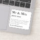 Personalize seus detalhes de casamento com este adesivo elegante e totalmente personalizável no estilo do dicionário. Nossa definição de Sr & Sra. é o perfeito toque moderno para o grande dia. Você pode personalizar toda a definição com uma piada dentro engraçada, uma mensagem sincera, ou uma citação divertida que captura sua história de amor única. Os nomes dos casais podem ser adicionados por baixo, criando uma manutenção de tipo um. Este versátil adesivo de casamento personalizado é ideal para decorar seus favores de casamento para adicionar um detalhe único e personalizado à caixa ou bolsa de favoritos de cada convidado. Também pode ser usado como plástico de presente de casamento para fazer seu presente se destacar com um rótulo verdadeiramente especial. Ou use-o para selar convites, agradecer cartões, ou salvar as datas, presentes de chá de panela e festa de noivado. Nosso adesivo de casal personalizado é obrigatório para o planejamento moderno do casamento. É um alternativo de monograma excelente, um dom noivado pensado, e a maneira perfeita de adicionar um na moda, toque especial à sua celebração. Clique para personalizar o texto e personalizar este adesivo exclusivo para um evento verdadeiramente inesquecível!