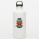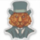 Um tigre que veste um fato teal e um chapéu de cima é representado contra um fundo mudo, dando uma aparência elegante e caprichosa. A expressão séria do animal é enfatizada pelo traje formal.