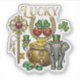 Celebrate luck and prosperity with this stunning artistic collage. Featuring a majestic elephant with a green top hat, a golden key adorned with a ladybug, a pot of gold, and sparkling emerald acorns. This design blends traditional Irish luck with universal symbols of good fortune. Perfect for St. Patrick's Day celebrations, unique gifts, or anyone who needs a little extra charm in their life. High-quality graphics with a touch of gold and emerald elegance."