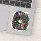 Design Steampunk Independence Day com uma mulher e seu gato.