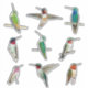 Coleção de adesivos de beija-flores bonitos com espécies de beija-flores que se encontram nos Estados Unidos, como os beija-flores de Allen, Rufous, Broad-bled, Ruby-throated e Calliope.