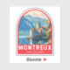 Design de viagem de vetor retrô de Montreux. O MONux é uma cidade tradicional no lago de Genebra. Enfiado entre colinas íngremes e o lado do lago.
