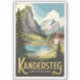 Kandersteg retro vetor viagem design. Kandersteg é uma vila de resort de alta altitude na região de Suiça da Oberland Bernesa. Trilhos, como o desafiante Allmenalp, e um teleférico a leste para o lago Oeschinen.