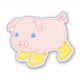 Ilustração vetorial de um adorável leitão correndo em botas de borracha amarelas.