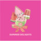 Adelações de melancia, design de verão colorido sobre fundo fuchsia e texto "Delícias de Verão"