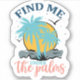 Summer Vibes Sticker, Encontra-me debaixo das Palmas. Summer vibe design com cores calmantes. Coloque o adesivo em um laptop, tablet, notebook, espelho, telefone, garrafa d'água, moente, janela do veículo, refrigerador ou qualquer superfície lisa.