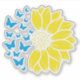 Sunflower and butterflies. Ukrainian flag colours. Support Ukraine. Sticker.