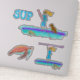 Adesivos divertidos em forma de SUP com meus desenhos ilustrados. Tema tropical de menina de paddle de pé com seu cachorro e uma grande tartaruga marinha. Adesivos artísticos podem ser usados para aniversário de verão de uma adolescente, ou festa de água de verão com amigos. Ou adicione os adesivos às capas de livros, pastas escolares ou papel de presente.
