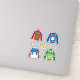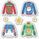 Quatro suéteres coloridos feios e estrelas douradas com brilho (sem brilho real).