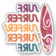 Design de surfboard com Surf Surfer Surfer Surfer (Surfer Surfer Surfista) - tipografia básica em reverso para a característica de inversão lateral quando vista por um espelho, cores retrorinspiradas e efeitos angustiados em um adesivo.