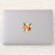 Laptop adesivo com prancha de surfe e folhas tropicais e flores com texto, "Surf".