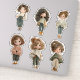 This charming sticker sheet features 6 unique chibi-style girl stickers illustrated in a soft, playful digital clipart style.