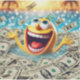 A joyful person swimming in a sea of gold coins and dollar bills, arms outstretched, enjoying wealth and success. A fun and vibrant design symbolizing prosperity and abundance!