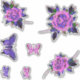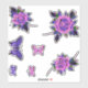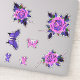 Estes adesivos estão em uma tradicional design de tatuagem de borboletas de rosa e crânio. Há três rosas diferentes e três borboletas diferentes no design. As borboletas têm pequenos crânios nas designs. Esta é a via colorida rosa e roxa.