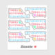 Este design de adesivo com tema de aniversário apresenta a mensagem celebratória "feliz aniversário" e um nome de destinatário que pode ser editado. Ele também apresenta uma forma estelar. Os adesivos editáveis como estes poderiam ser usados para desejar um feliz aniversário a alguém.