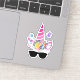 Um decal de vinilo com um unicórnio fofo e tendão com borboletas e flores e vestindo óculos escuros.