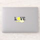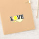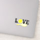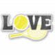 Design de texto "Love" com tênis amarelo e decoração de raquete