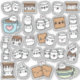Folha adesiva de vinilo com ilustrações comidas bonitas. Estes designs apresentam marshmallows divertidos, mores, biscoitos graham e rabiscos de chocolate.