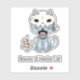 Gato com aparência raivosa com marcas de tatuagem, colar ósseo e um crânio em cima da cabeça está sentado ao lado de uma boneca vodu com pinos.