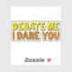 Dedique-me, atrevo-te a viciar. Uma citação confiante de uma pessoa opinada que pode argumentar através de qualquer discussão sobre órbita ou competição. Legal texto amarelo brilhante e laranja neste adesivo de humor orador para uma equipe de discurso e debate. Confie em que ganhará qualquer argumento.