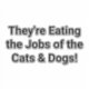 They're Eating the Jobs of the Cats & Dogs! Comic-Social-Commentary Splash-Art Vinyl sticker-design by Jeff Hankamer at Artjunkhaus